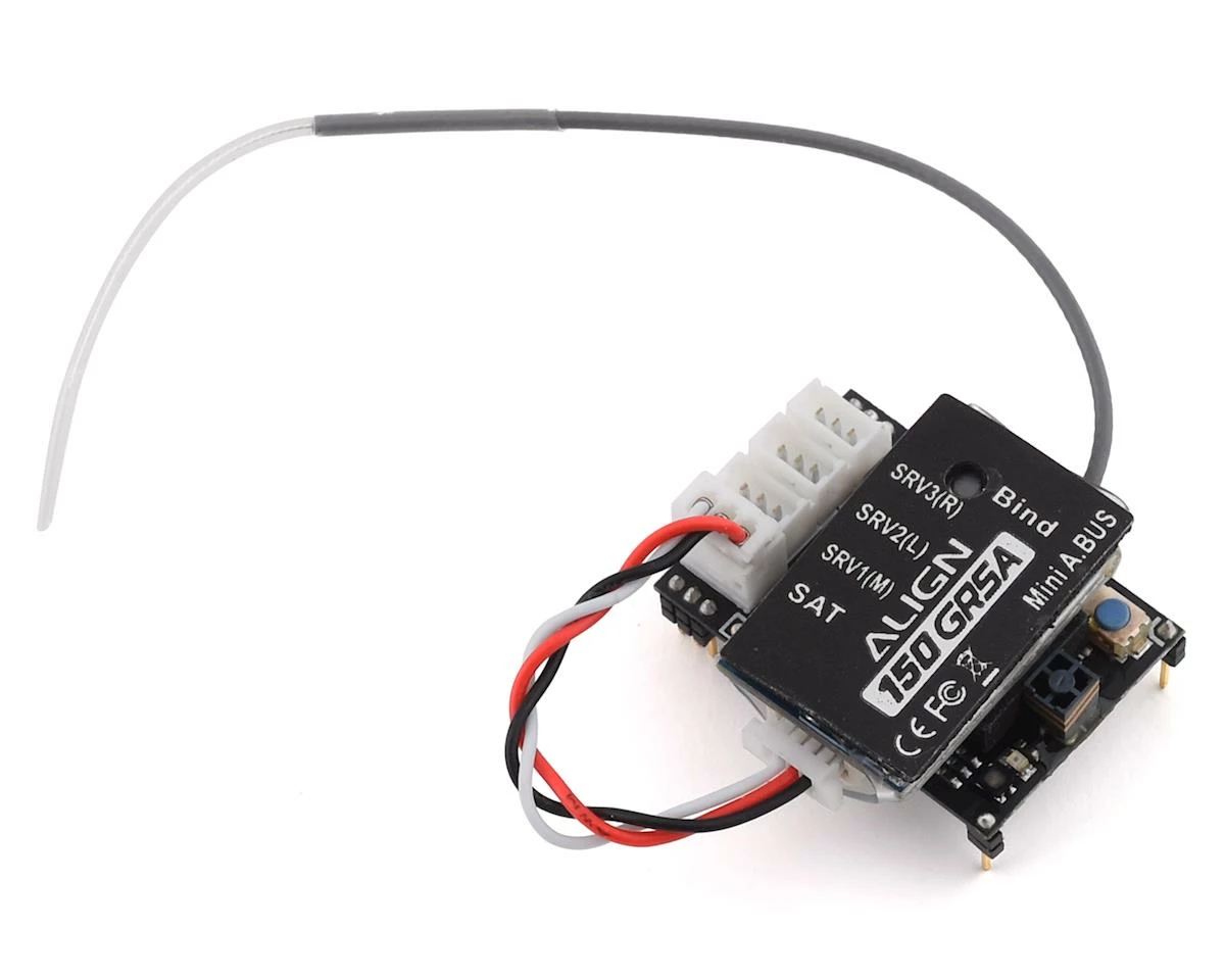 This is a replacement Align 150GRSA Flybarless System, and A.Bus Receiver. This replacement can be used with both the T-Rex 150 and T-Rex 150X helicopters. Users who are using the Align A10 radio system require this particular flybarless unit, as it is compatible with the A.Bus modulation that the A10 communicates with. Additionally Spektrum users can connect a compatible DSM2 or DSMX remote satellite receiver and bind it to their favorite Spektrum radio system.