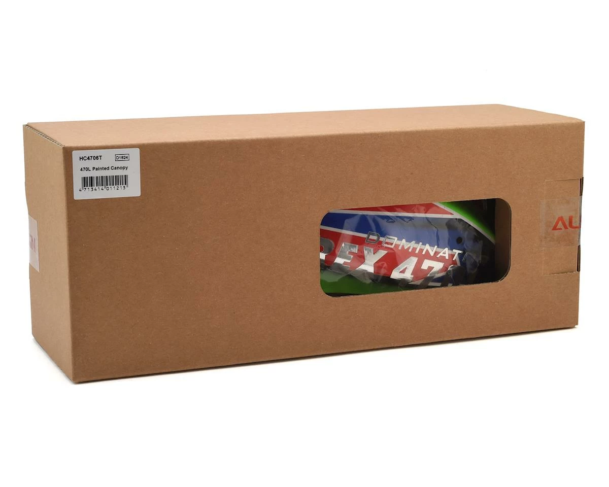 This is an optional Align T-Rex 470L Painted Canopy, in the Green, Red, & Blue paint scheme.