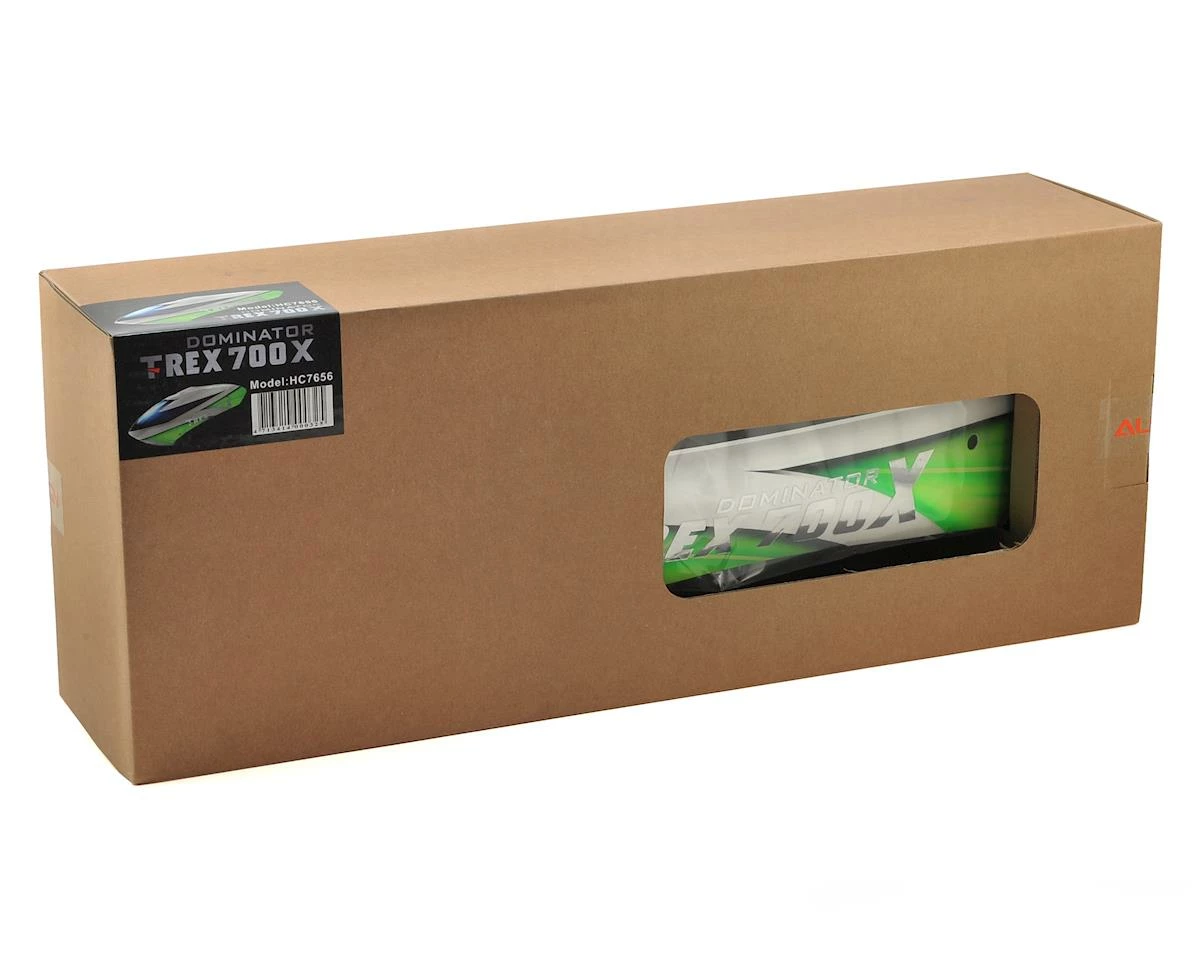 This is an optional Align T-Rex 700X Canopy, painted in White, Green, & Blue colors.Â