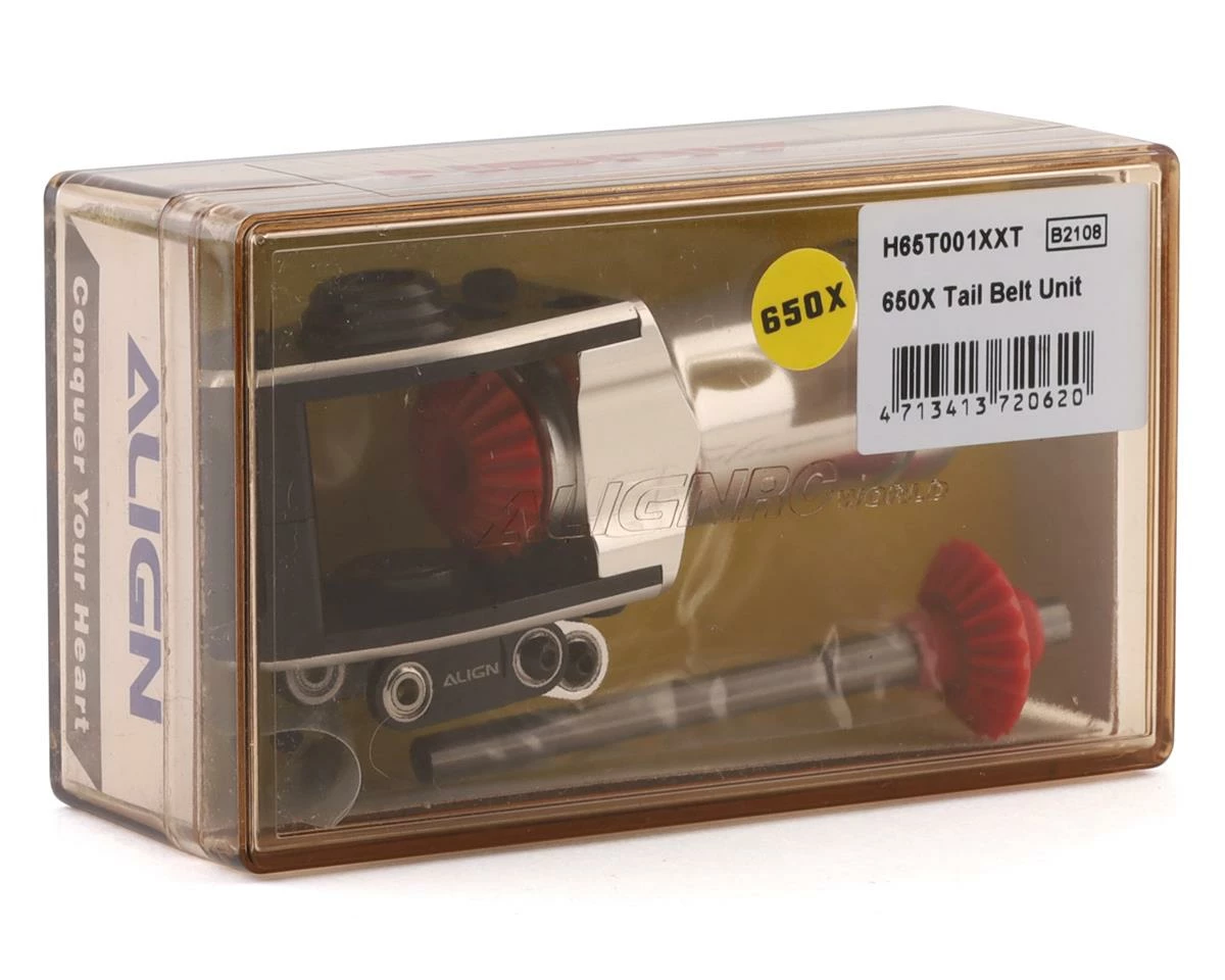 This is a replacement Align T-Rex 650X Tail Case Unit. This includes a set of rear torque tube gears, tail shaft, and tail pitch arm assembly.