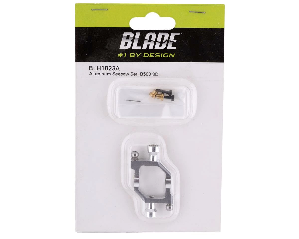 Blade 500 3D Aluminum Seesaw Set. This optional seesaw set has been designed to add strength and precision to the Blade 500 3D. Package includes one assembled aluminum seesaw set.