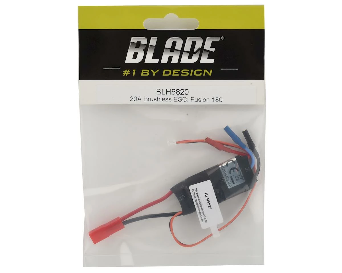 This is a set of Blade 20A Brushless ESC, a replacement 20A Brushless ESC for the Blade Fusion 180 Electric Flybarless Helicopter. Package contains one 20A Brushless ESC.