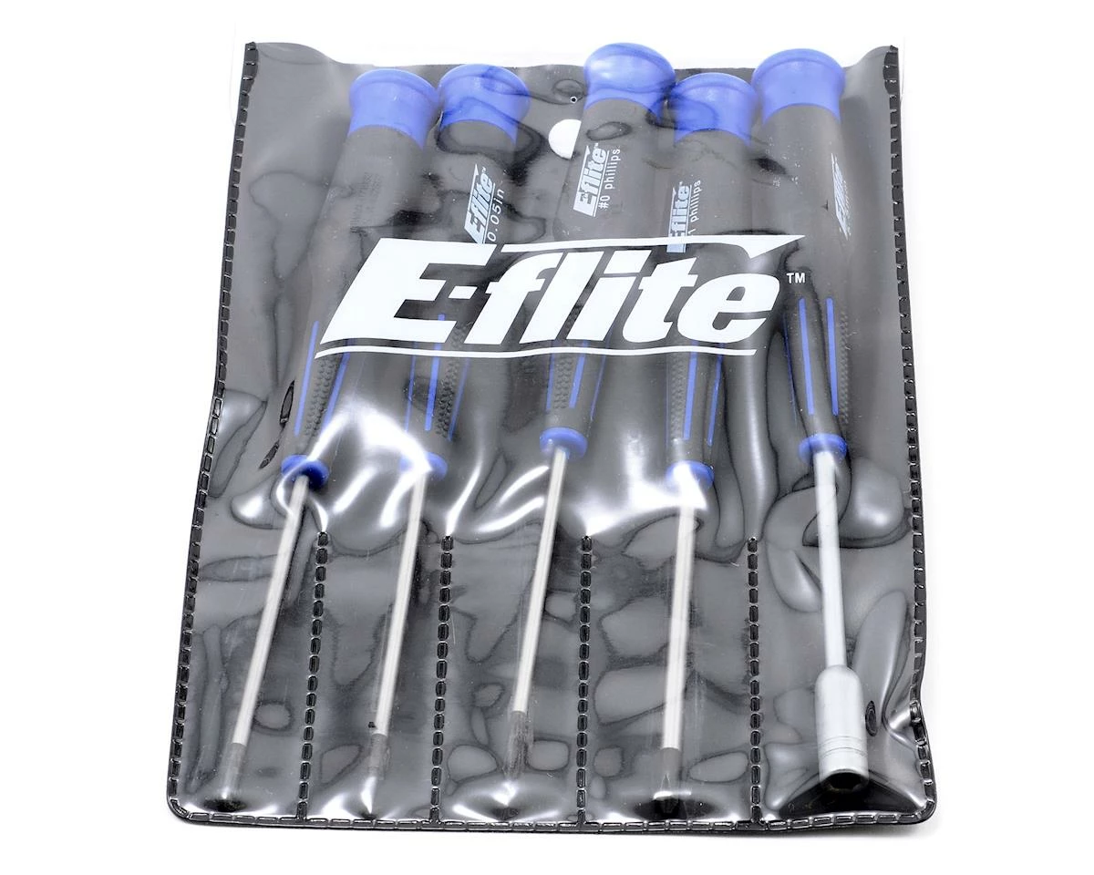 E-flite™ introduces a handy and inexpensive 5-piece tool set with storage pouch, designed for electric park flyer pilots.