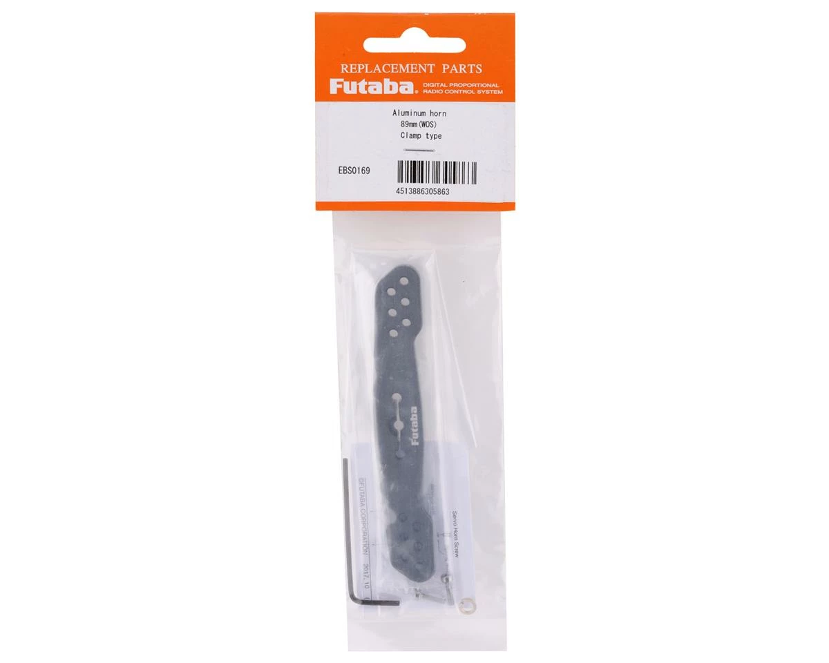 Futaba 89mm Aluminum Clamping Servo Horn. This optional servo horn is intended for servos equipped with a 25T servo spline. Package includes one servo horn, one clamp screw and one allen key.