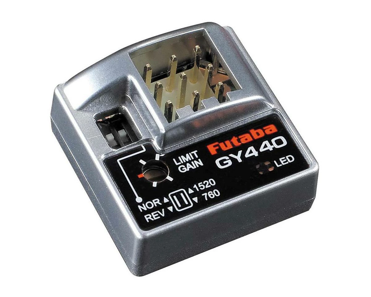 This is the Futaba GYA440 Single Servo Rate Gyro for Airplanes. COMMENTS: To install, plug the servo into port 3. Port 2 can be used for remote gain by connecting it to the desired channel on the receiver. If not using remote gain, gyro sensitivity can be adjusted using the limit trim. Port 1 is used for the servo channel from the receiver when not using S.BUS input, otherwise it is connected to the S.BUS network via the receiver or another S.BUS device. When not using S.BUS, the Elevator/Rudder switch has no effect. When using S.BUS, the Elevator/Rudder switch determines the channel this gyro will accept input from. Putting the switch in the elevator position will set input to channel 2. Putting the switch to the rudder position will set input to channel 4. When using with S.BUS, channel assignments for this gyro are fixed: Elevator: CH 2 Rudder: CH 4 2nd elevator: CH 9 Gyro sensitivity, elevator: CH 7 rudder: CH 8 jxs 10/31/16 ir/jxs