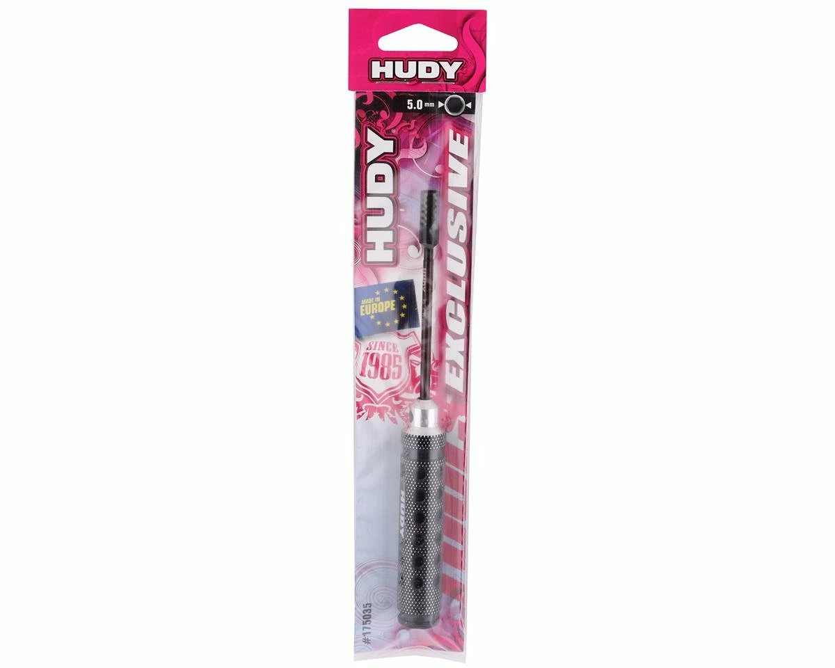 This is the Hudy Limited Edition 5.0mm Socket Driver. Featuring a super-lightweight CNC-machined Swiss 7075 T6 aluminum handle with a diamond pattern surface for unsurpassed grip. The handle includes a black plastic cap press fit into the handle end. Optional color-coded plastic caps (violet, red, blue) are available to customize the tools to your specifications.