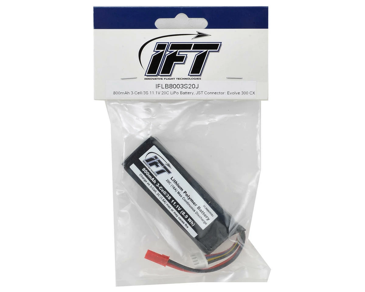 This is a replacement 3 cell 20C LiPo Battery Pack with JST connector suited for use with the Evolve 300CX Helicopter from Innovative Flight Technologies.