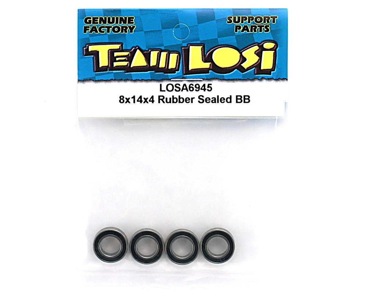 This is a pack of four 8x14x4 rubber sealed ball bearings for the Losi 8IGHT racing buggy. These are the outer bearings in the hub carriers.