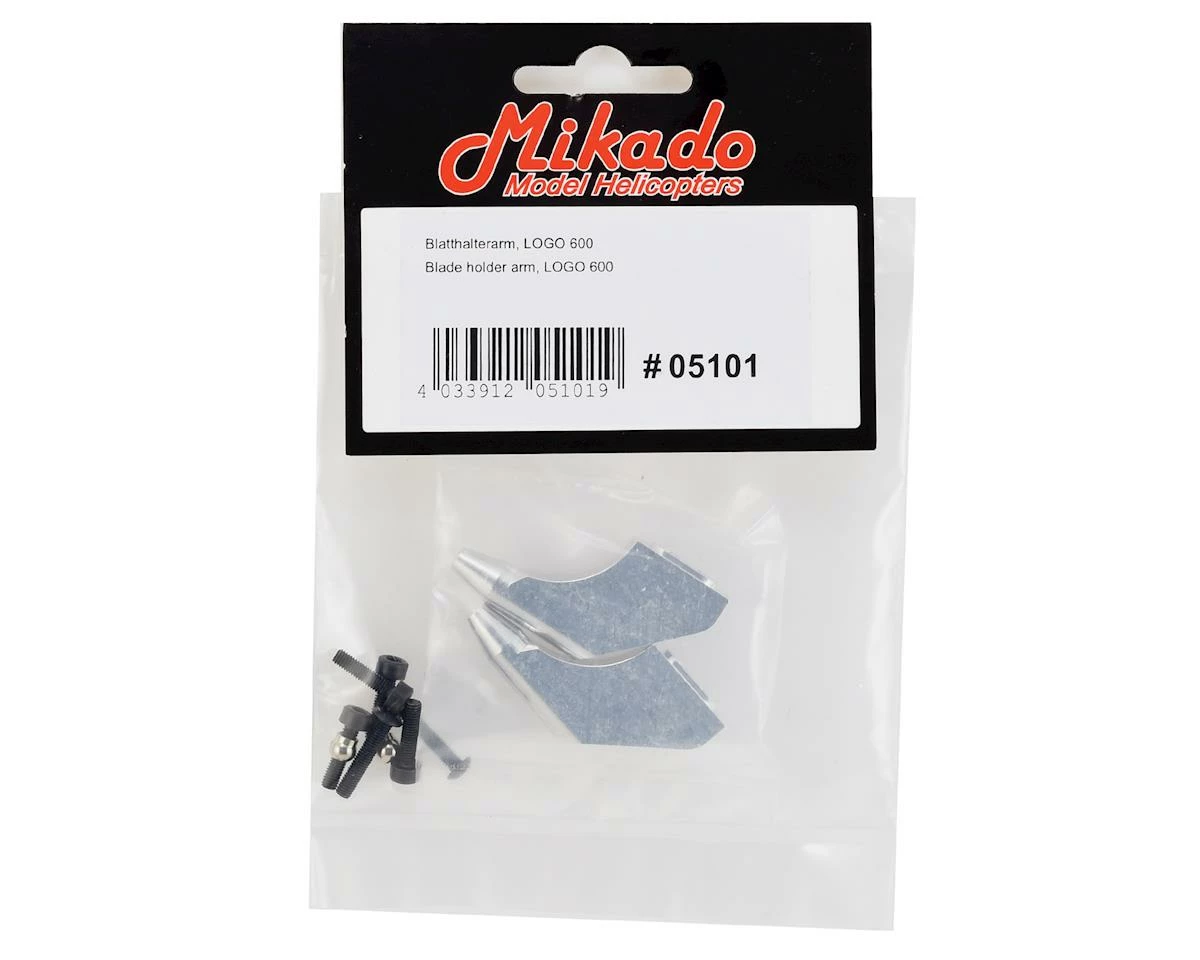 This is a replacement Mikado Blade Holder Arm Set, suited for use with the Logo 600 2017 edition helicopter that features aluminum rotor grips.