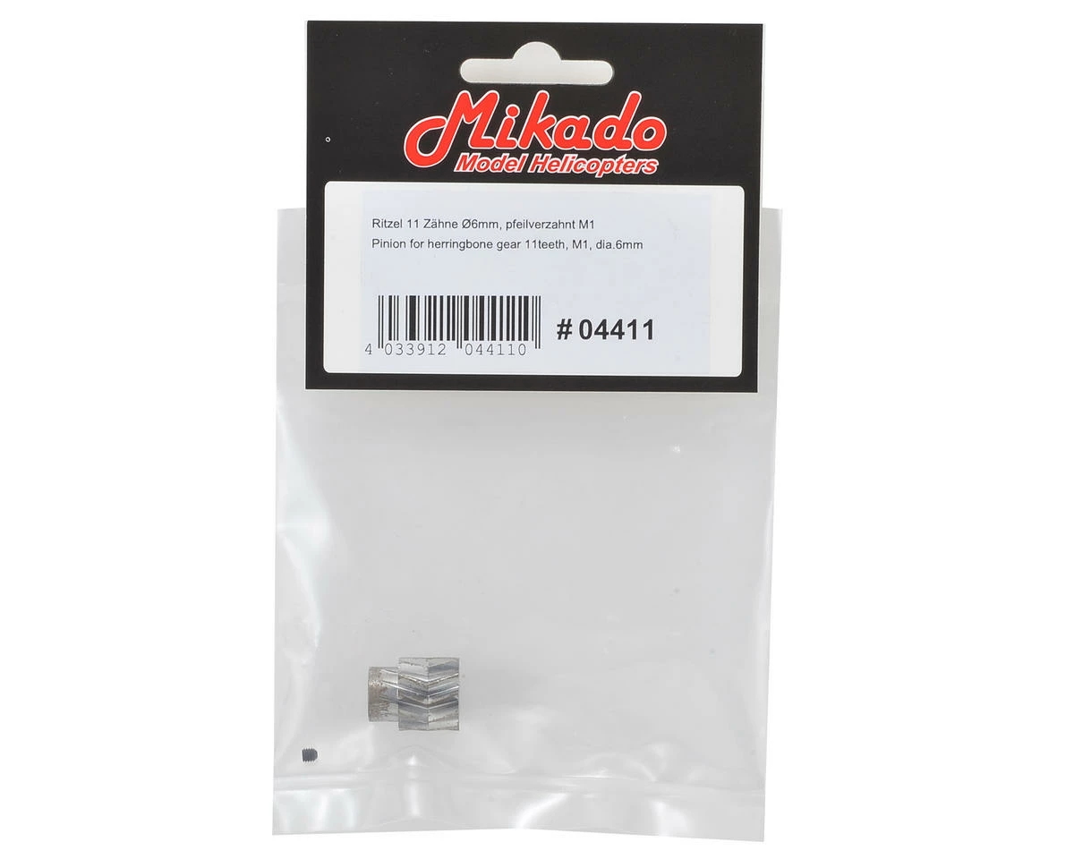 A replacement 11T M1.0 Herringbone Pinion Gear suited for use with the Mikado Logo series of helicopters. Supports 6mm Motor Shaft Diameters