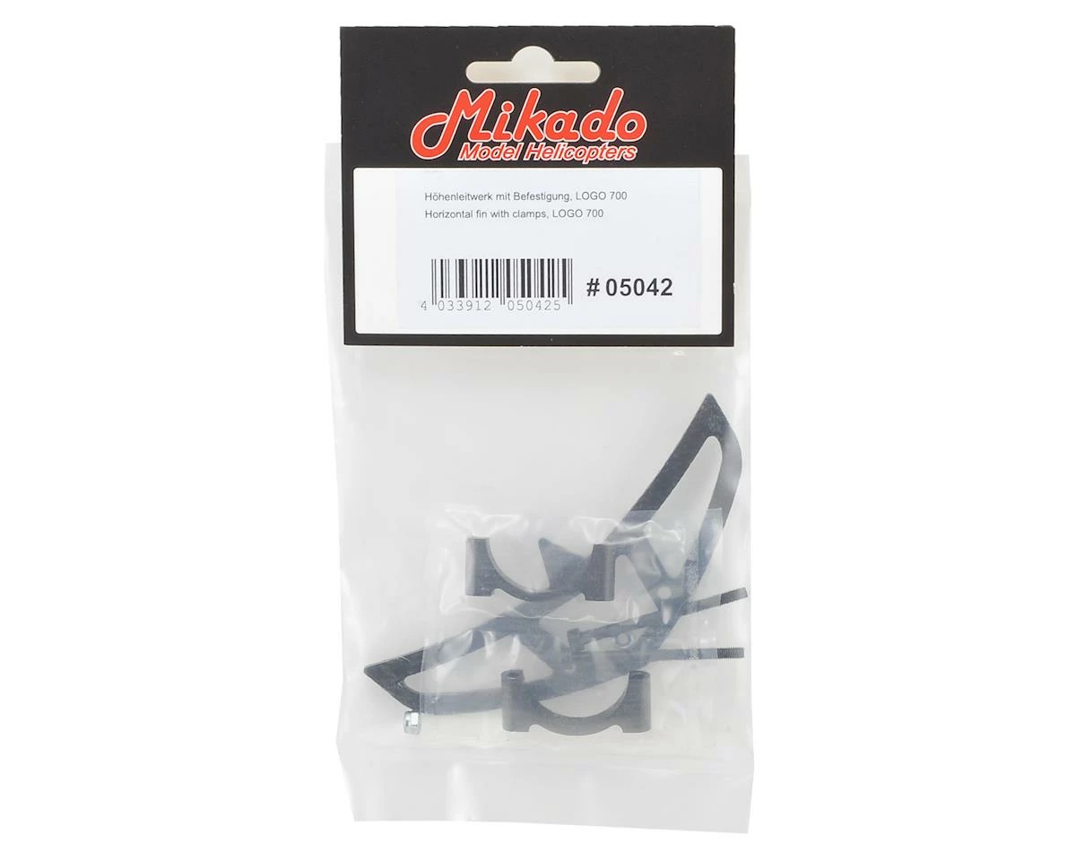 A replacement Carbon Fiber Horizontal Fin, & Horizontal Fin Clamp from Mikado. Suited for use with the Logo 700 helicopter.