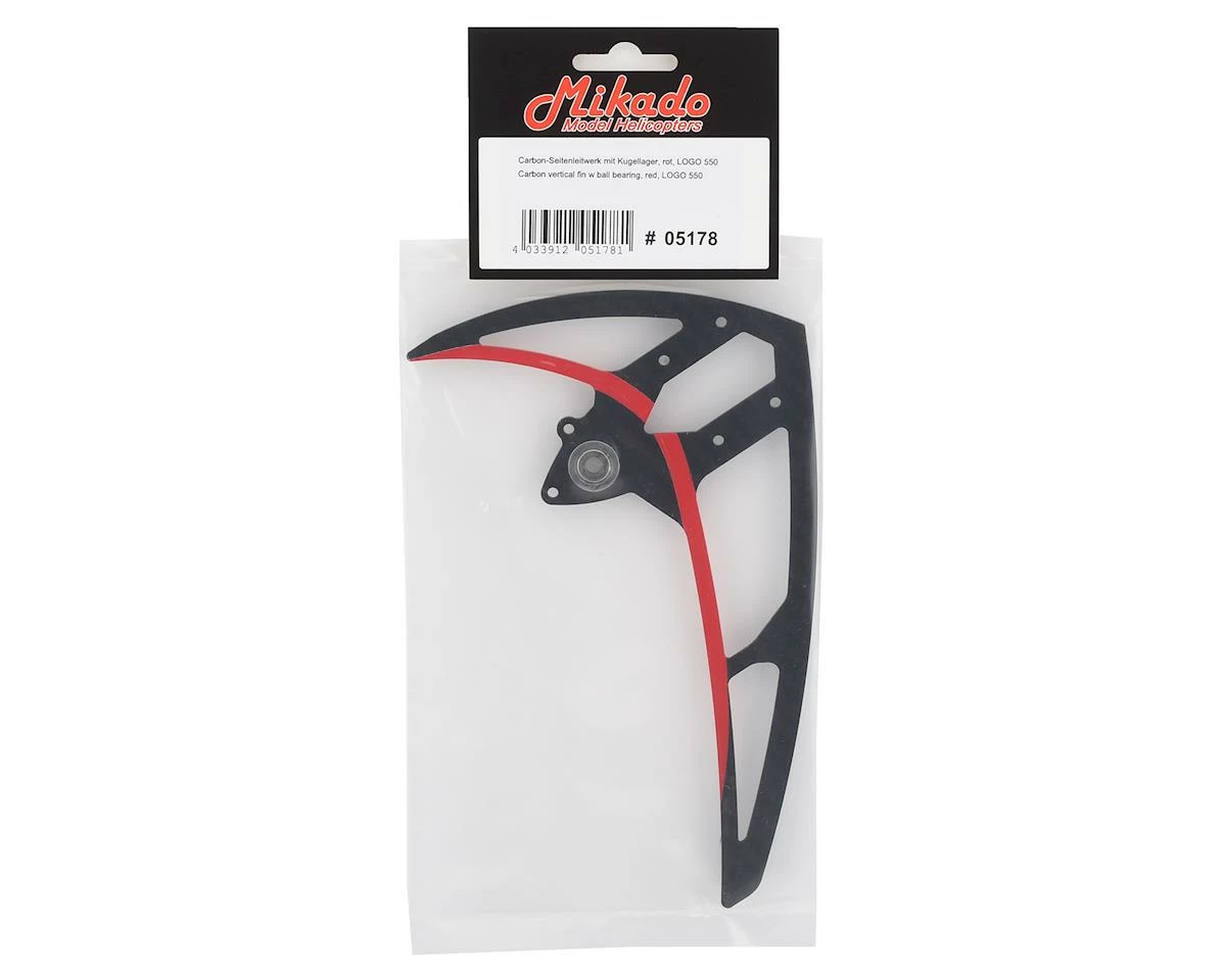 An optional Mikado Logo 550 Tail Fin, featuring a red painted accent.