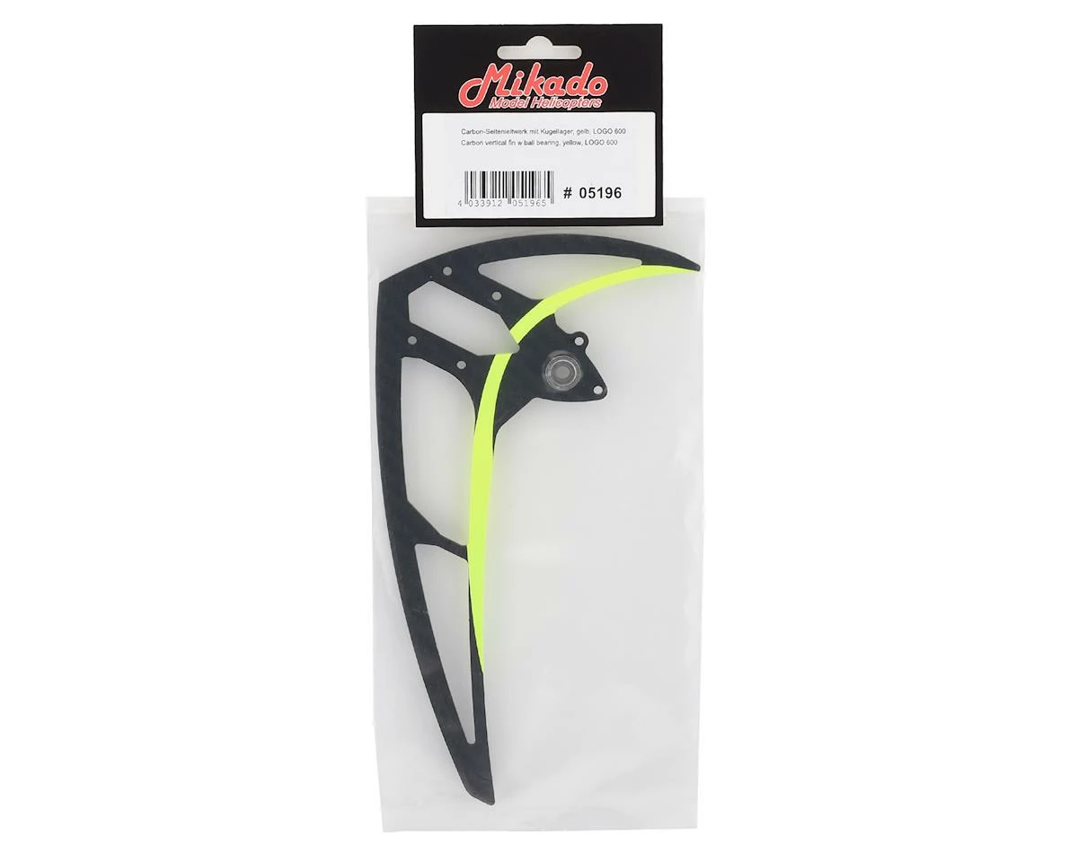 This is an optional Mikado Logo 600 Vertical Fin featuring a yellow painted accent.