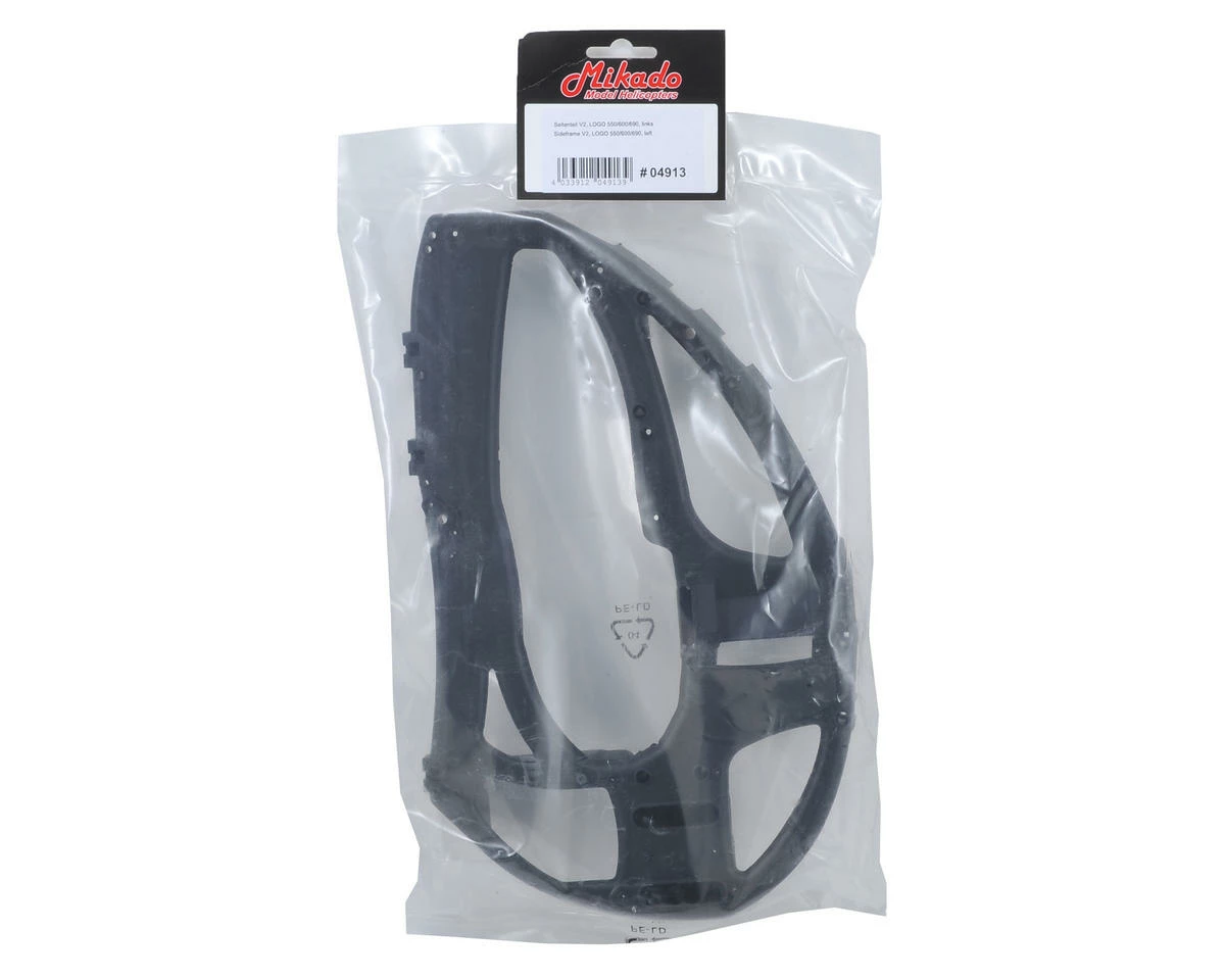 A single V2 Light Sideframe suited for use with the Mikado Logo series of helicopters.The V2 frame features the Battery Mounting Locking location that is no present on V1 Sideframes.