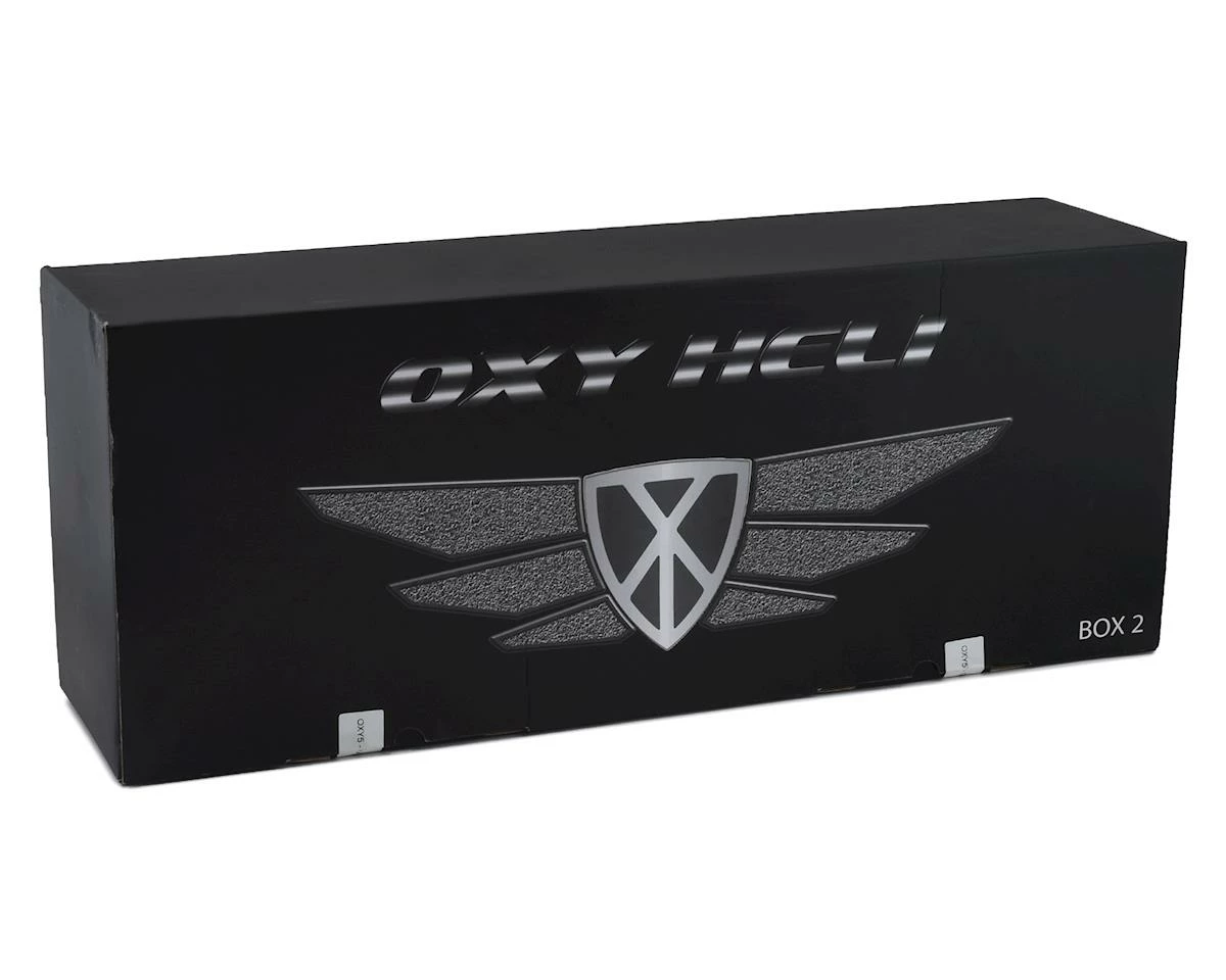This is an optional Oxy Heli Oxy 5 Painted Canopy, painted with a Yellow, Green, and Blue livery.
