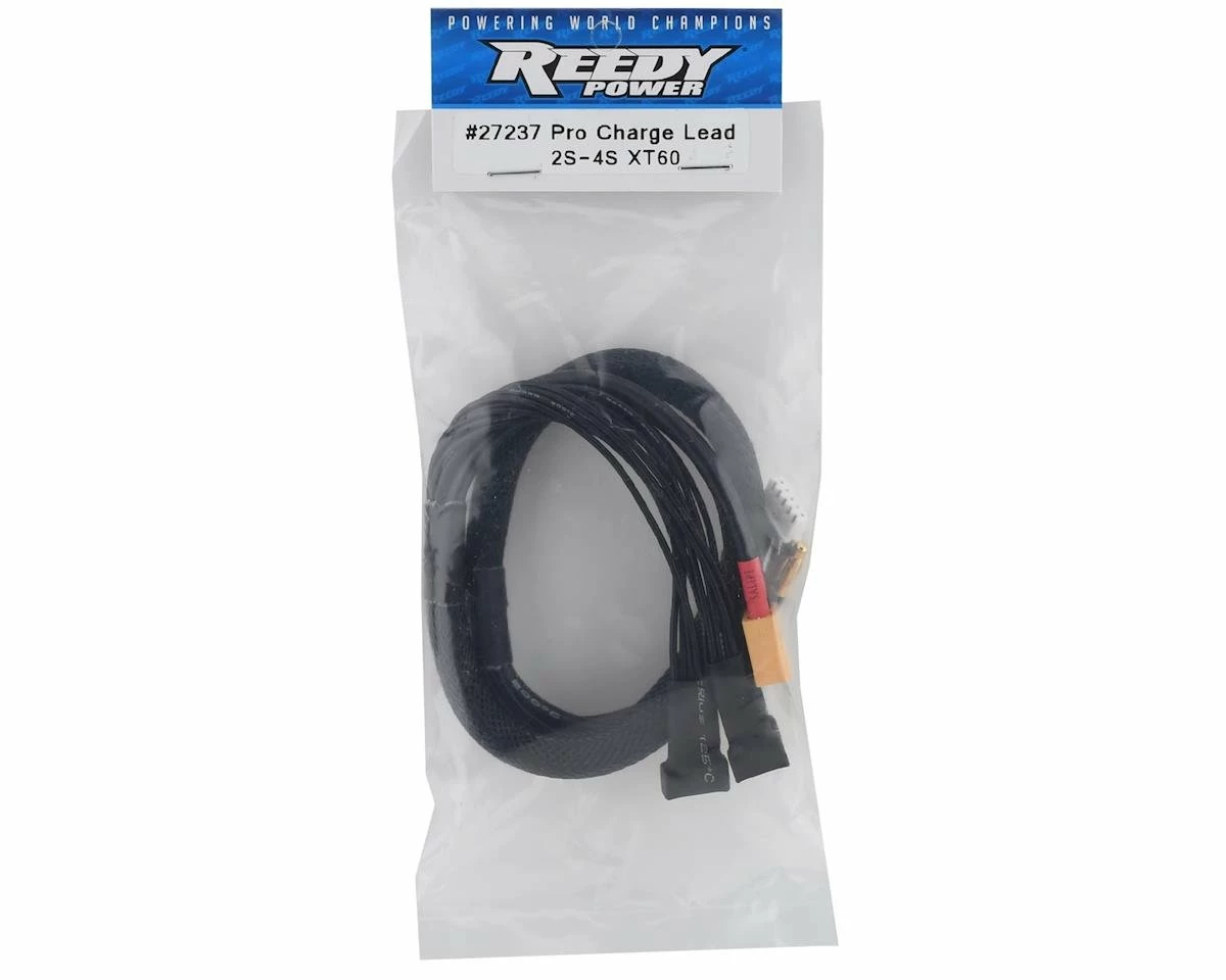 This is a Reedy 2S-4S XT60 Pro Charge Lead, available in a variety of configurations for most batteries used in popular 1/10 and 1/8 applications. Heavy-duty 12-gauge silicone wires provide maximum current flow without overheating during high-current cycling. Mesh sheathing offers additional protection and a professional appearance while positive ends are clearly marked to prevent reverse polarity. After selecting the correct cell-count setting, simply connect the main plug and then plug the battery’s balance lead into the appropriate balance connector to charge.