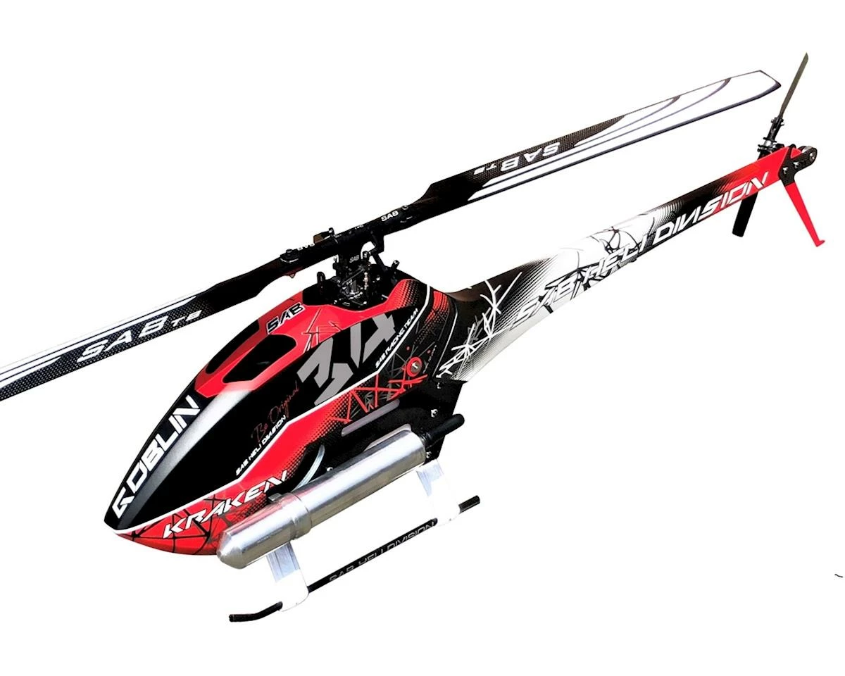 This is the SAB Goblin 580 Kraken Flybarless Nitro Helicopter Kit is the third helicopter design featuring the latest “separated transmission style” that originally debuted on the Kraken 700 helicopter. Incredible bold styling, and legendary flight characteristics are packed into a smaller design – the Kraken 580!Â