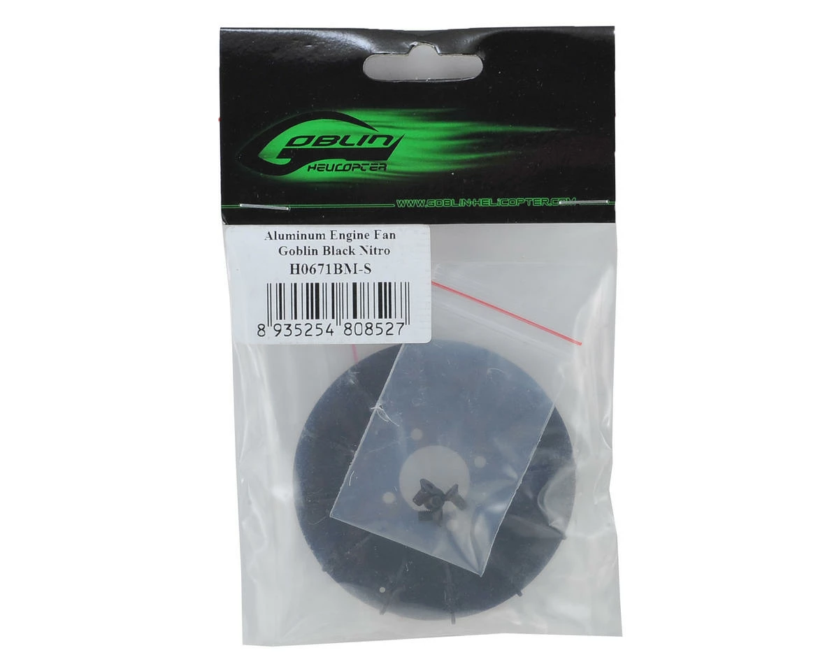 A replacement SAB Aluminum Engine Fan suited for use with the SAB Black Nitro Helicopter.