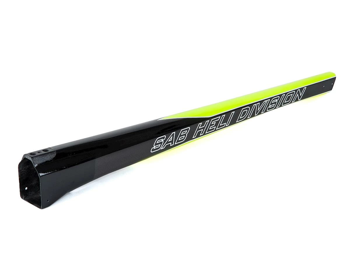 This is a replacement Carbon Fiber Boom with Yellow & Carbon Paint Scheme from SAB, suited for use with the Goblin Black Thunder & Goblin Black Nitro 700 helicopters.