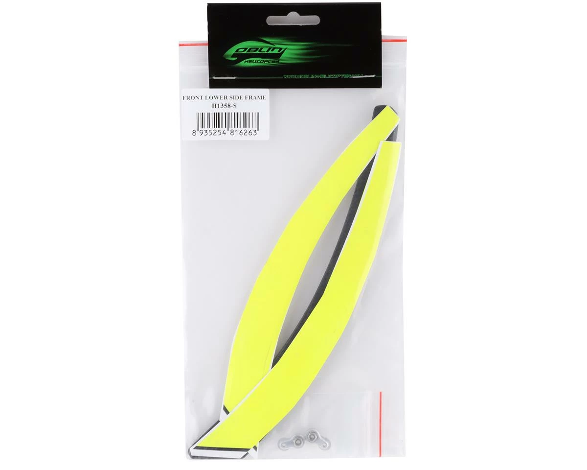 This is a replacement set of two SAB Goblin Front Lower Side Frames, suited for use with the Goblin Raw 700. Includes yellow decals.