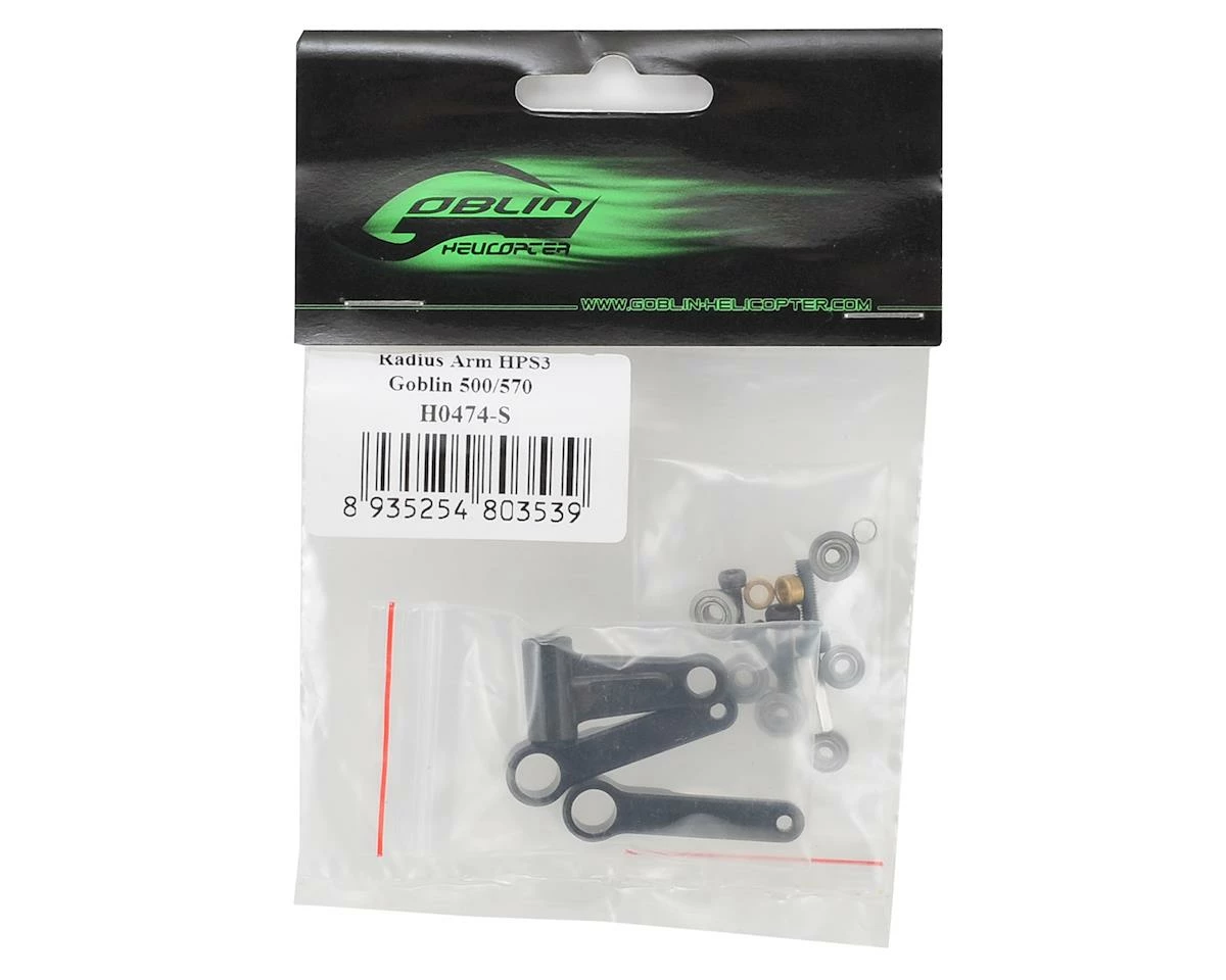 A replacement Radius Arm Set from SAB, suited for use with the HPS3 Tri-Blade Rotor Head equipped Goblin 500, and Goblin 570 helicopter.Â