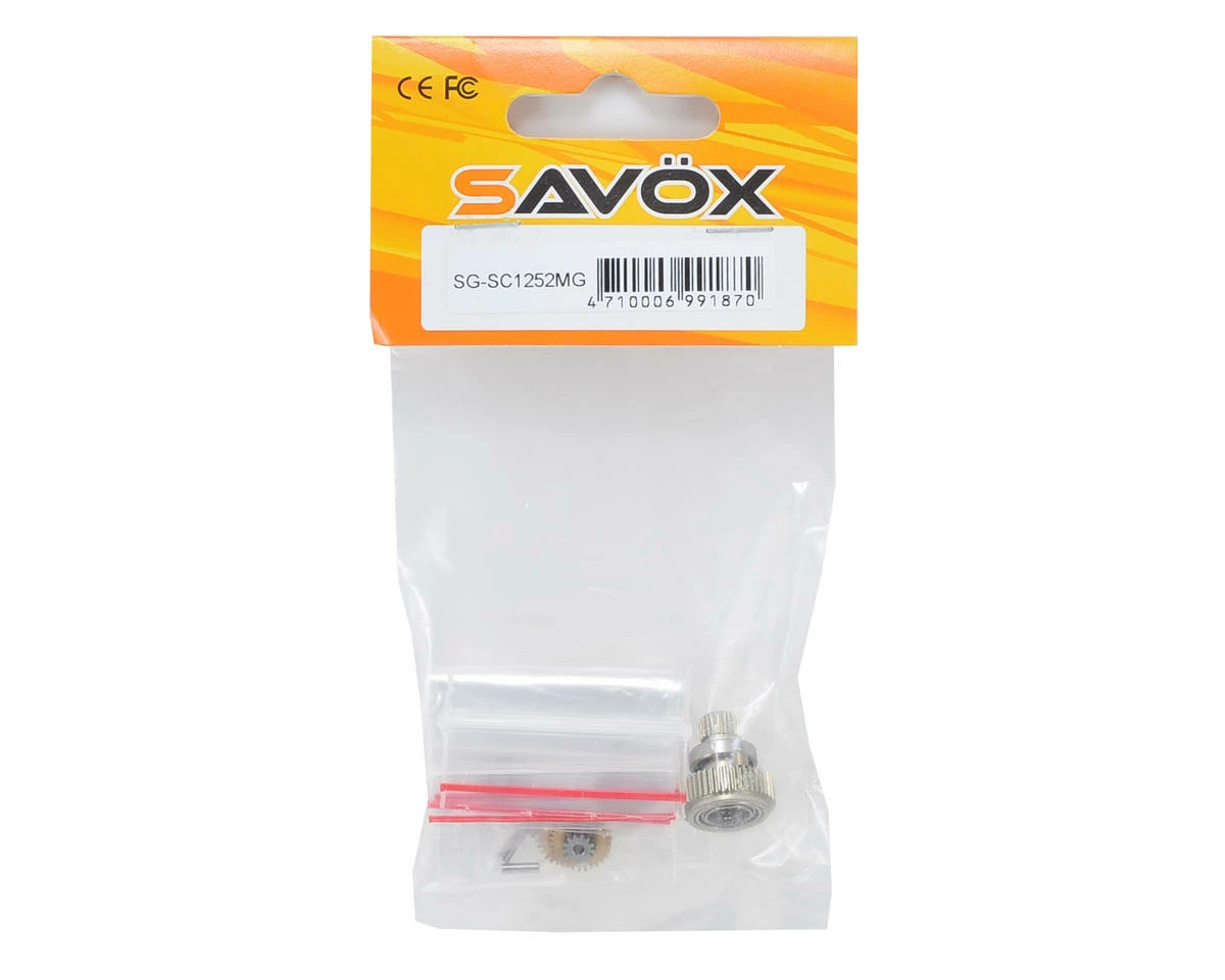 Savox SC1252MG Metal Gear Set. This gear set is a replacement for the SC1252MG servo. Package includes the gears, pins and bearings needed to replace the gear train in one servo.