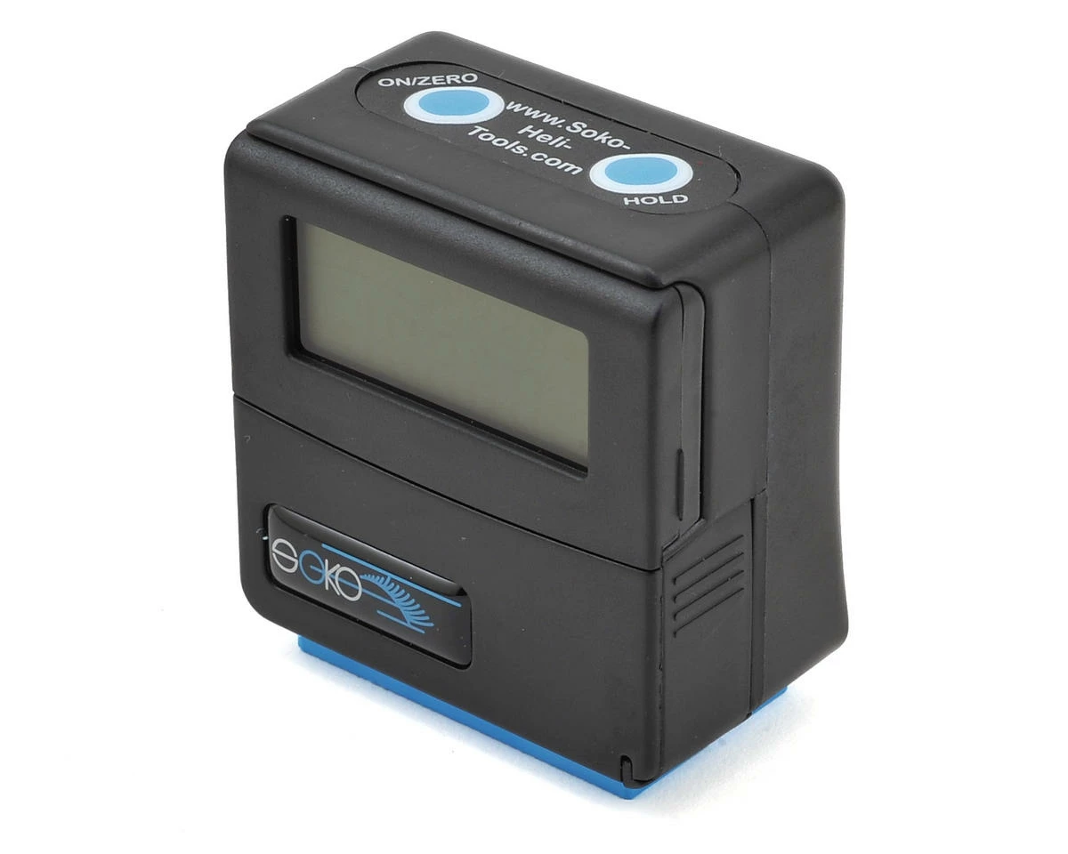 The Soko Gauge is the latest generation of digital angle gauges, or also known as bevel box, or tilt level box. Of course this gauge offers simplistic relative angle measurements, but additionally offers absolute level (Spirit Level) measurements which is useful for gyros that incorporate “Bail Out” or “Rescue” features.