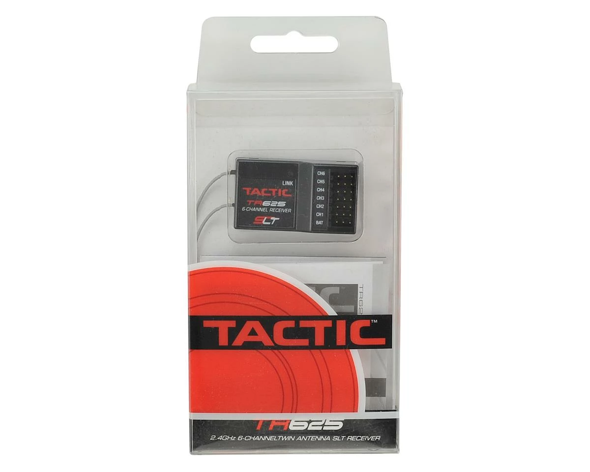 The Tactic TR625 features twin 5.9″ (15 cm) coaxial antennas, making it a great low cost option for everything from park flyers to giant scale planes, plus all sizes of helis. Enjoy incredible range with excellent signal clarity, and fly with confidence even in demanding radio environments.