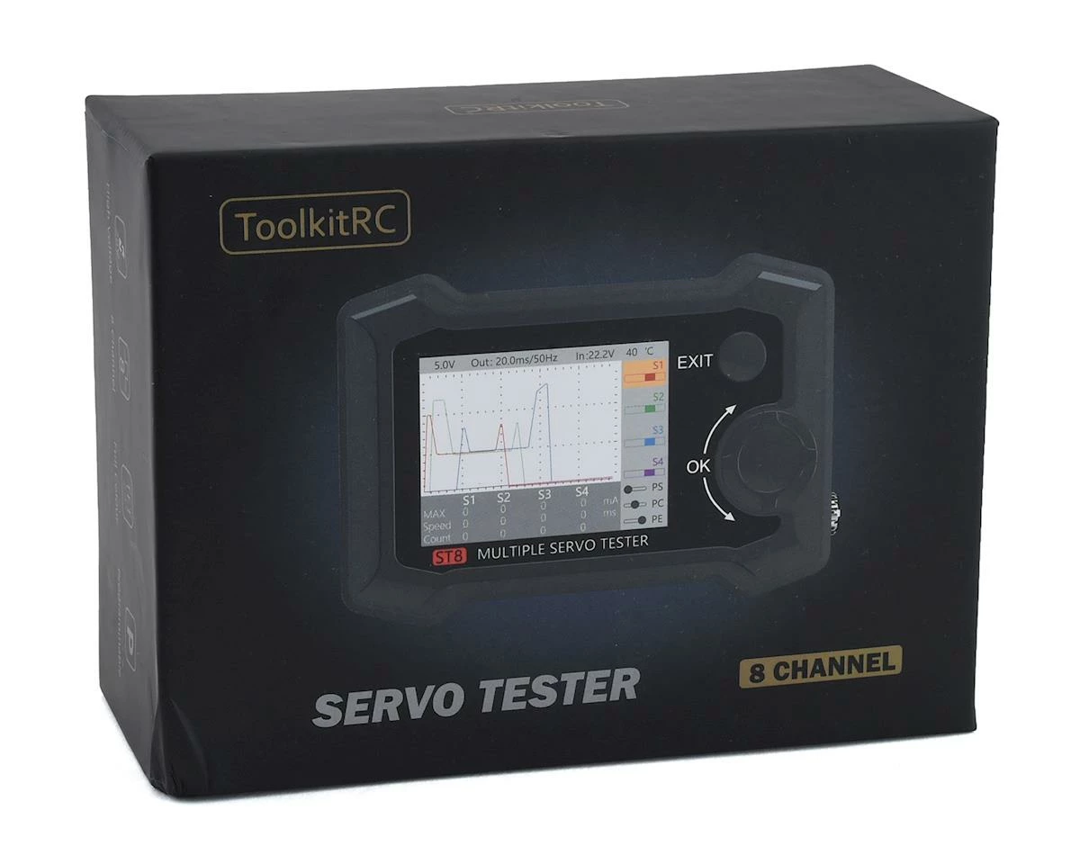 The ST8 Advanced Multi-Servo Tester is an incredible leap forward with a tool that is a must have for almost any R/C enthusiast. With the ability to adjust up to 4 servos at once (@ independent signal), 8 total servo outputs (@ a single signal), various measurement modes, various signal trigger sources, servo speed testing, and external signal input from PWM, PPM, or S.Bus signal, the ST8 will provide powerful tools to anyone looking for a great multi-purpose tool.Â